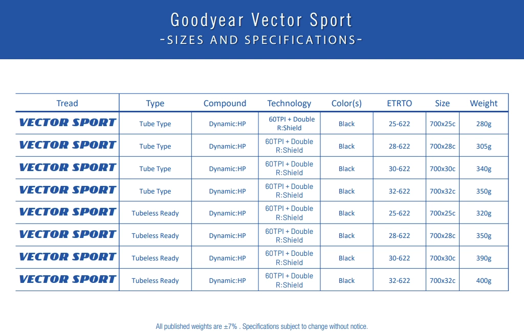 - Odkryj doskonałą przyczepność i wytrzymałość z oponą GOODYEAR Vector Sport Tube Type. Idealna na każdą pogodę i teren.