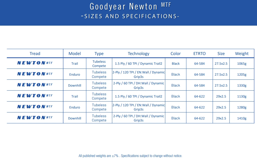 - Odkryj nowy wymiar jazdy z oponą GOODYEAR Newton MTF Trail Tubeless Complete, idealną do ścieżek górskich. Wytrzymałość i przyczepność, jakiej potrzebujesz.
