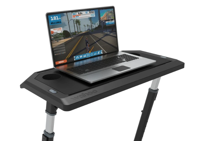 - Wahoo Kickr Desk v2 to w pełni regulowane biurko do treningu i pracy, wyposażone w uchwyty na tablet i smartfon, antypoślizgową powierzchnię, miejsce na butelki i kable oraz kółka ułatwiające przemieszczanie.