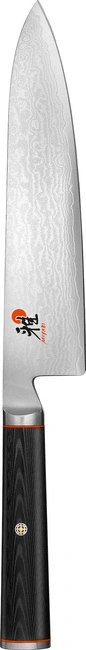 Dla pewnego i wygodnego chwytu nóż wyposażono w stabilną rękojeść z Micarty, która łączy elegancki wygląd z praktyczną trwałością. Japoński profil ostrza wyróżnia się obustronnym szlifem oraz specjalnym, niezwykle ostrym wykończeniem Honbazuke. Dzięki temu Gyutoh umożliwia precyzyjne, płynne i komfortowe krojenie, nawet przy dłuższej pracy.